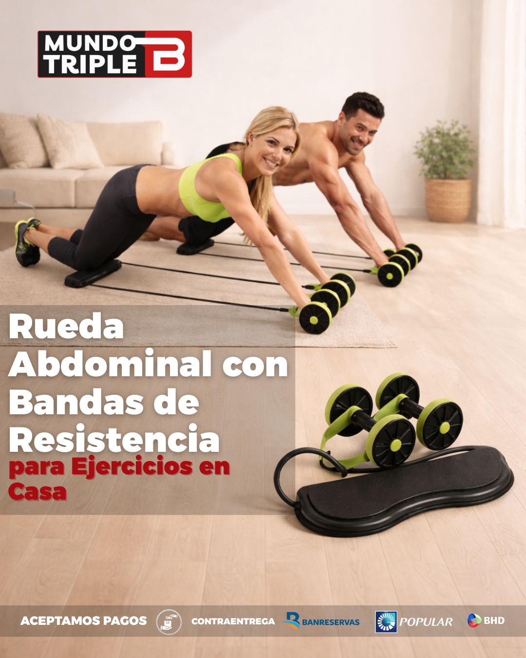 Entrena todo tu cuerpo desde casa con la Rueda Abdominal Multifuncional con bandas de resistencia.